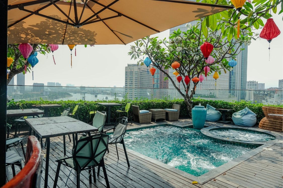 The rooftop’s open-air Jacuzzi pool provides an enchanting view of Saigon’s bustling city center. Guests can indulge in the soothing warmth of the bubbling waters while being treated to the mesmerizing spectacle of the lively metropolis below.